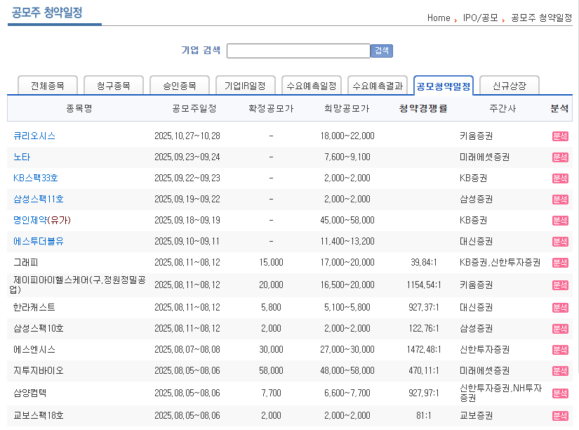 - 밸류에이션 (Valuation): 공모가가 기업의 실제 가치에 비해 적절하게 책정되었는지 판단하는 작업입니다. **주가수익비율(PER)**과 주가순자산비율(PBR) 등의 지표를 활용해 동종 업계 상장 기업들과 비교해 보세요.