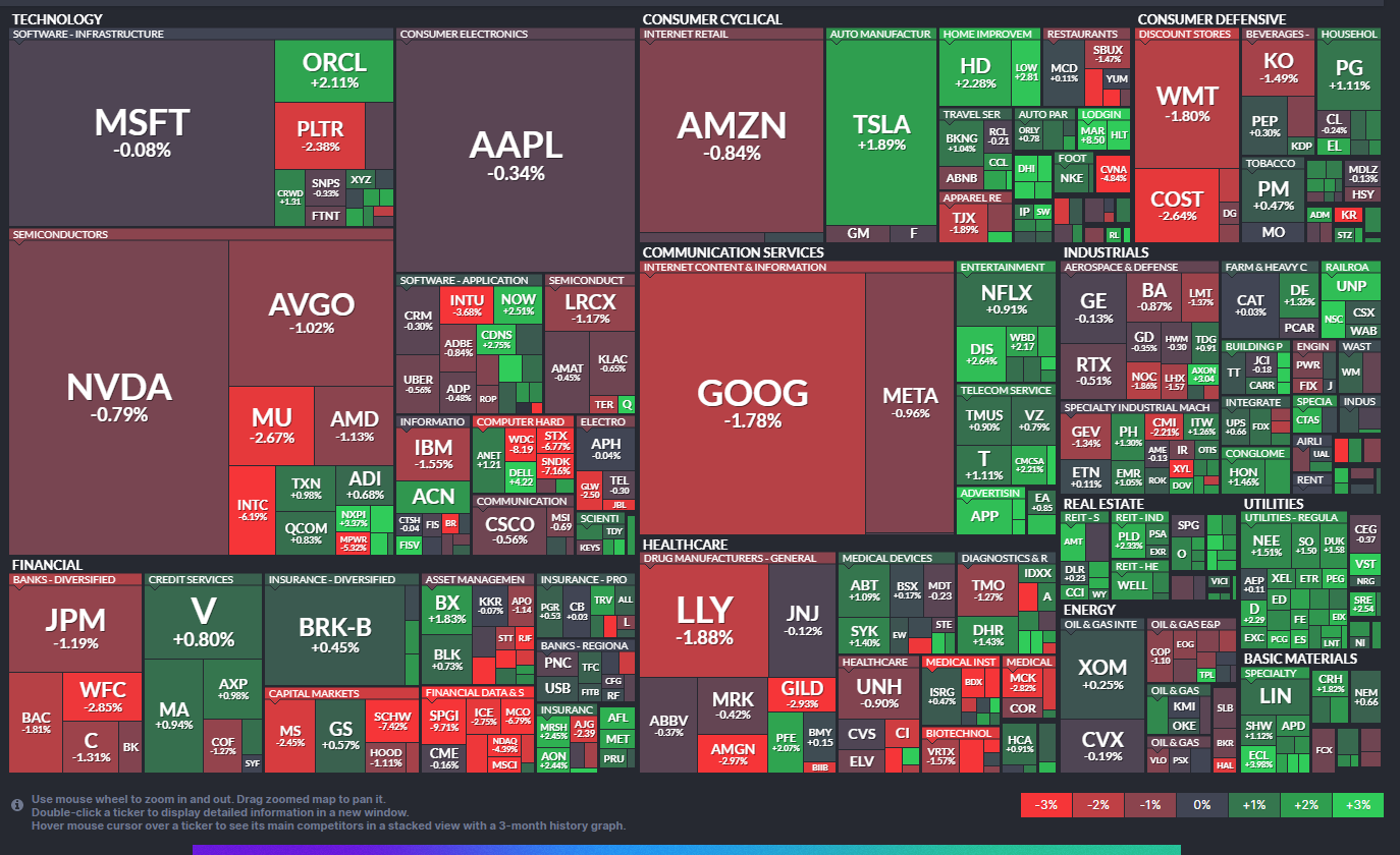 | S&P 500 | 6,941.81 | 🔻 -23.01 | -0.33% |